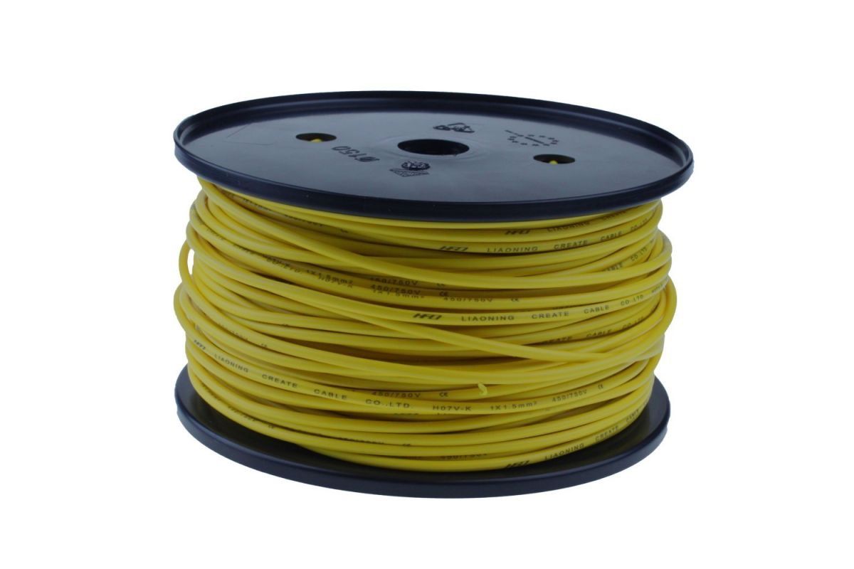ENKELADERIGE KABEL PVC 1,5MM2 GEEL (1M-500/ROL)